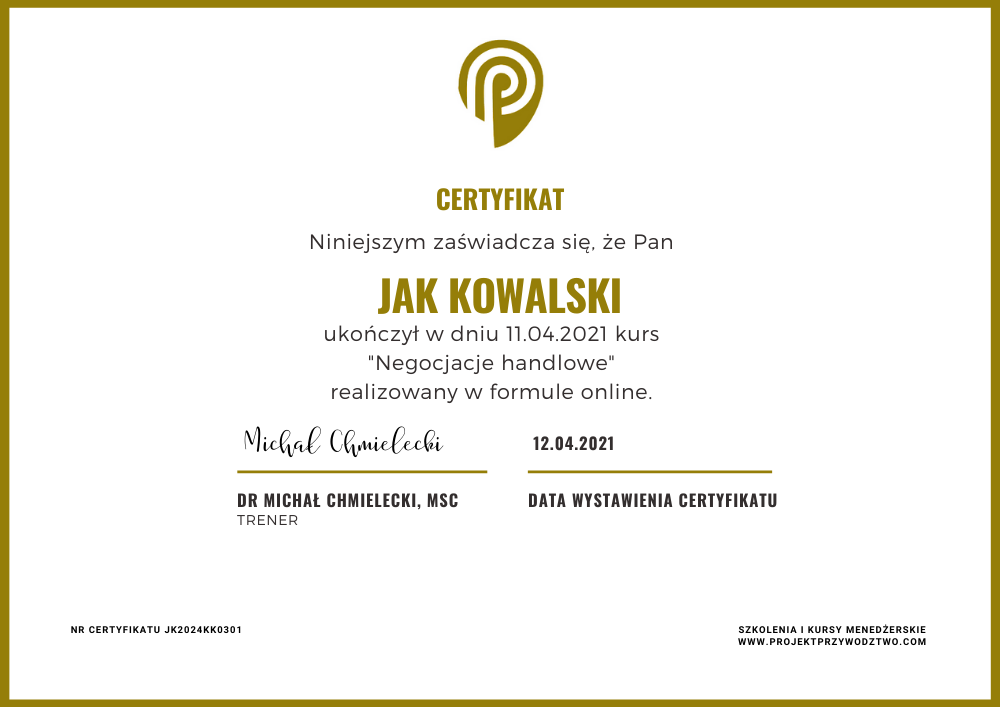 Kurs negocjacje handlowe stoi na bardzo dobrym poziomie. Wiele ciekawych i przydatnych informacji. Polecam